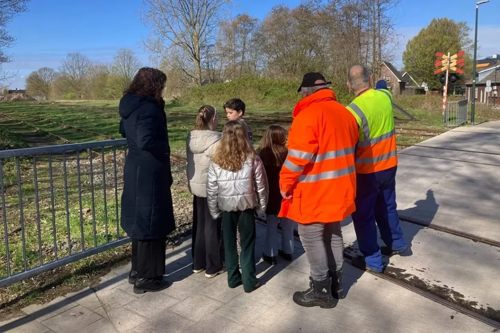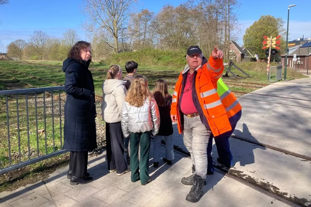 Vrijwilliger Nicolas Ogay geeft uitleg over veiligheid op het spoor